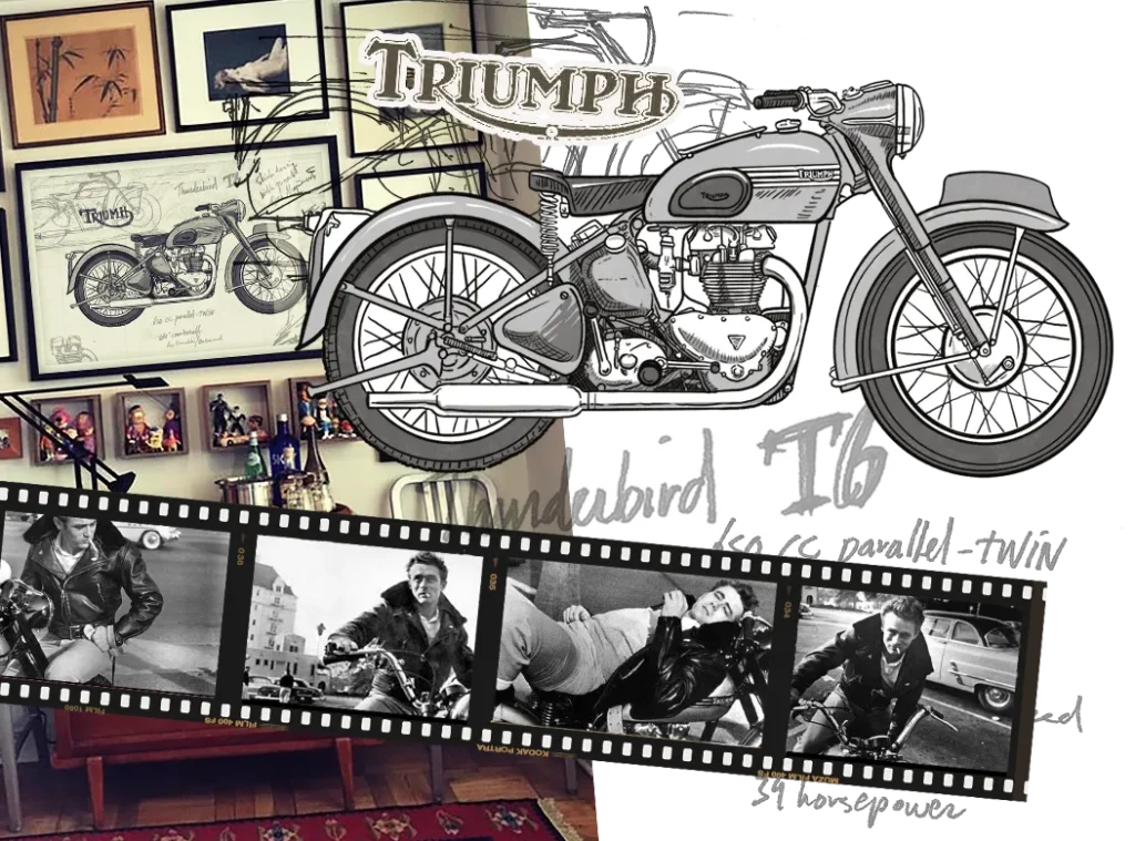 Illustration of the 1950 Triumph Thunderbird T6, a British parallel-twin motorcycle built for performance and export. Introduced after WWII, the Thunderbird was designed to appeal to the American market with more power and a bold design. It featured a 650cc engine — an upgrade from the Speed Twin — and helped define the classic British […]