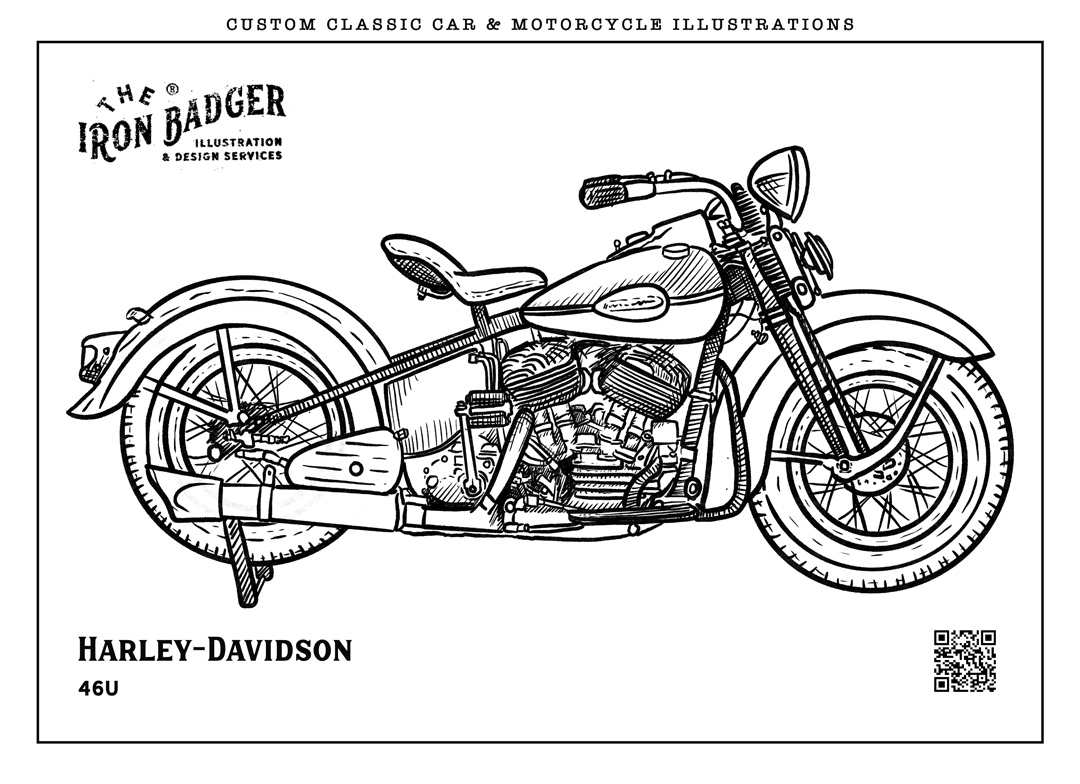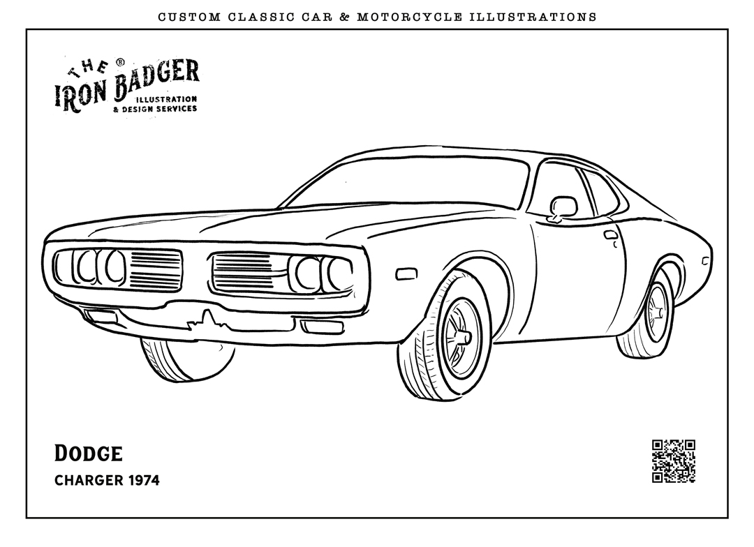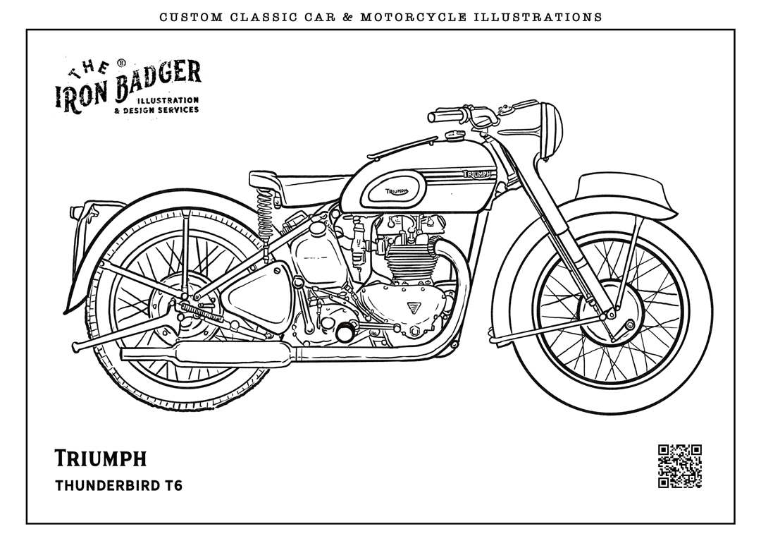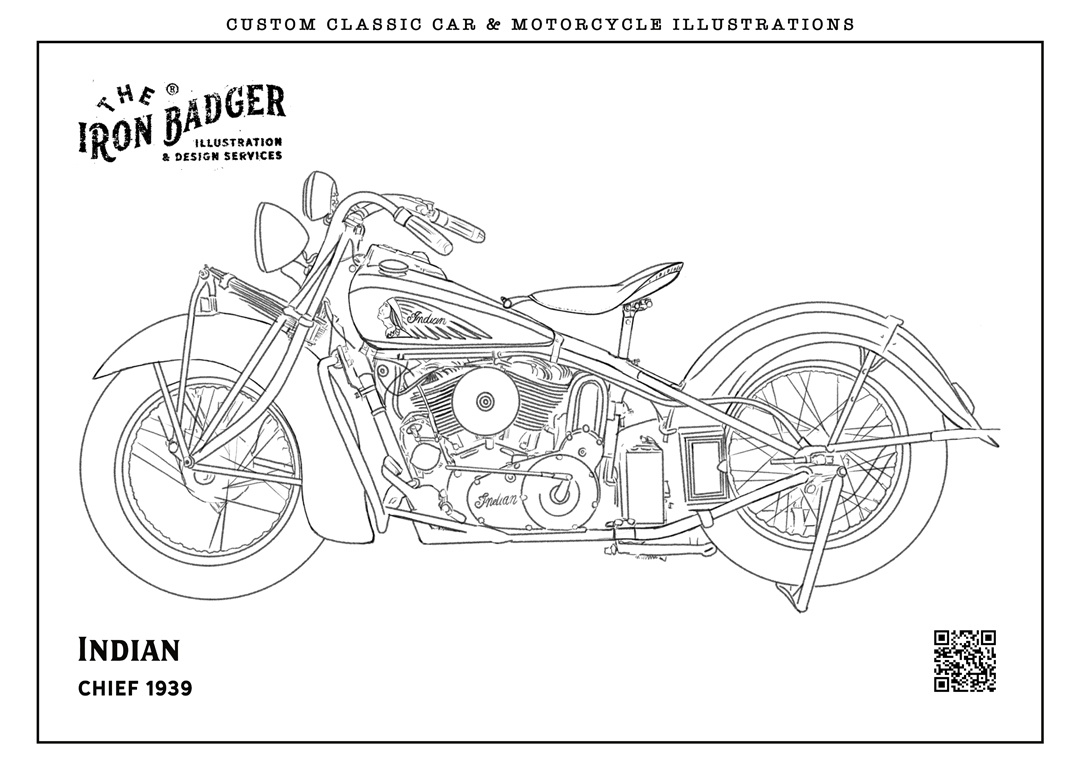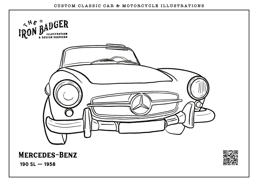 Welcome to the The Iron Badger coloring pages collection. Here you can download free coloring pages featuring classic cars, vintage automobiles and legendary motorcycles. Each illustration is hand-drawn by automotive illustrator Tom Winter – The Iron Badger and inspired by iconic vehicles from automotive history.
